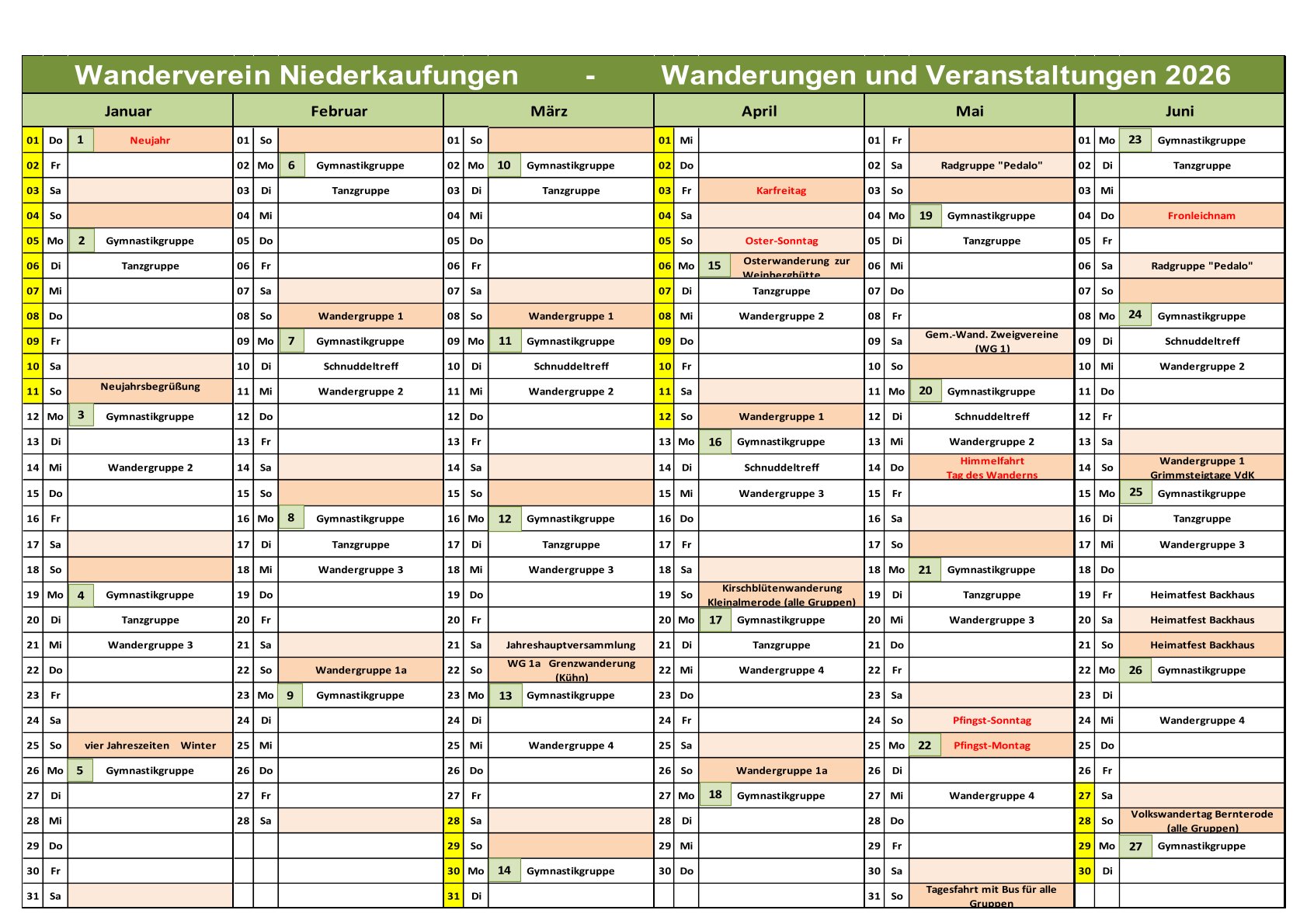 Wander- und Veranstaltungsplan 1. Halbjahr 2026 – Stand 01.01.2026