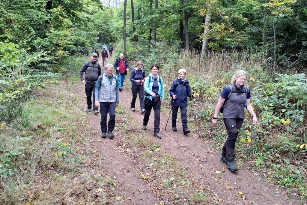 Die Wanderschule Nieste führt schon seit dem Frühjahr die 4 Jahreszeiten Wanderung durch. Dies ist ein Angebot, den Prämiumweg 11 an allen 4 Jahreszeiten zu wandern. Heute nun stand die Herbstwanderung auf dem Programm, die auf den gleichen Sonntag fiel wie die Wanderung unserer Gruppe 1a. So hatten die Wanderfreunde Horst Hoffmann und Alfred Meißer vereinbart, diese Wanderung gemeinsam durchzuführen. Da auch Nichtmitglieder eines Wandervereins an dieser Art des Angebotes teilnehmen, ist die Gruppe schnell auf über 30 Teilnehmer angestiegen.